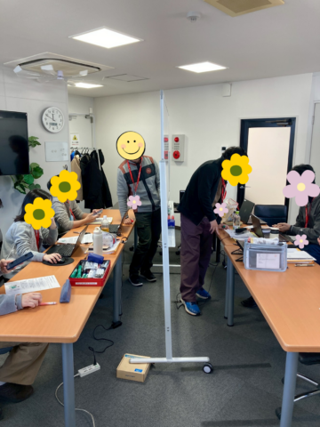 内容は、グループに分かれ、オフィスを想定した疑似会議及びプレゼンを行う、というモノ。